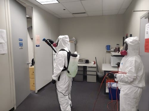 We have introduced an additional COVID 19 clean up alternative to our full COVID-19 service that may be more feasible for your company. We now offer a “no-touch” full-coverage application of a disinfectant. The CDC process in response to COVID-19 is to 1.) Clean all surfaces that are to be treated and then 2.) Apply EPA-registered disinfectant per manufacturer’s guidelines and master label.